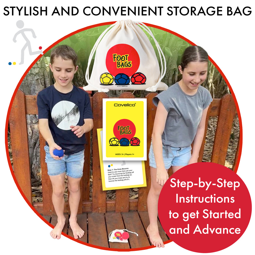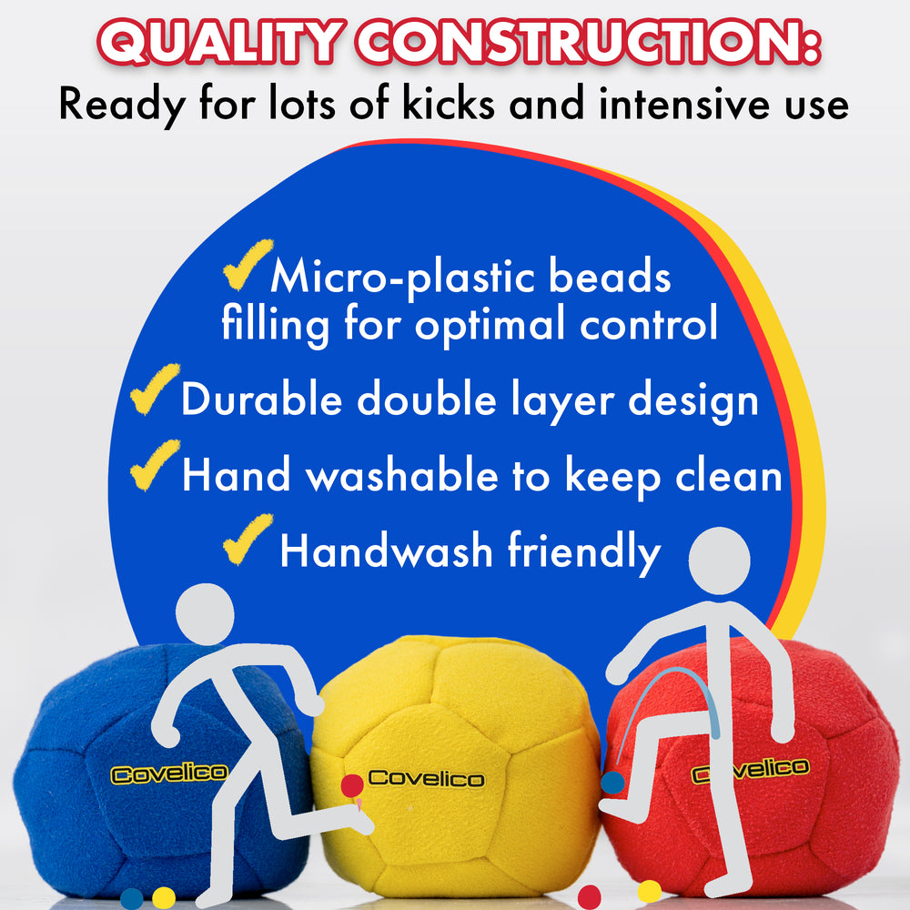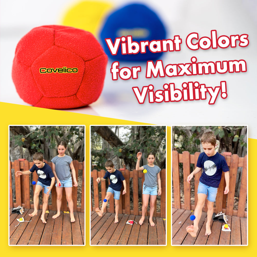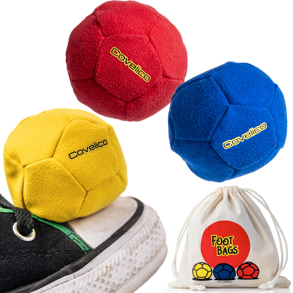 Swap phones for a classic circle-kick game. This set of 3 footbags (hacky sacks) keeps kids, teens, and adults moving indoors or out—perfect for solo practice or group play. The bright primary colours make tracking easy, while the beginner-friendly size and weight help new players learn stalls, taps, and passes fast.